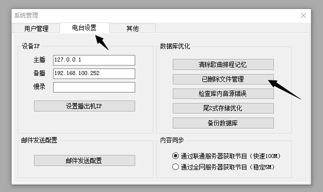 在【系統管理】窗口中,依次選擇【電臺設置】、【已刪除文件管理器】。