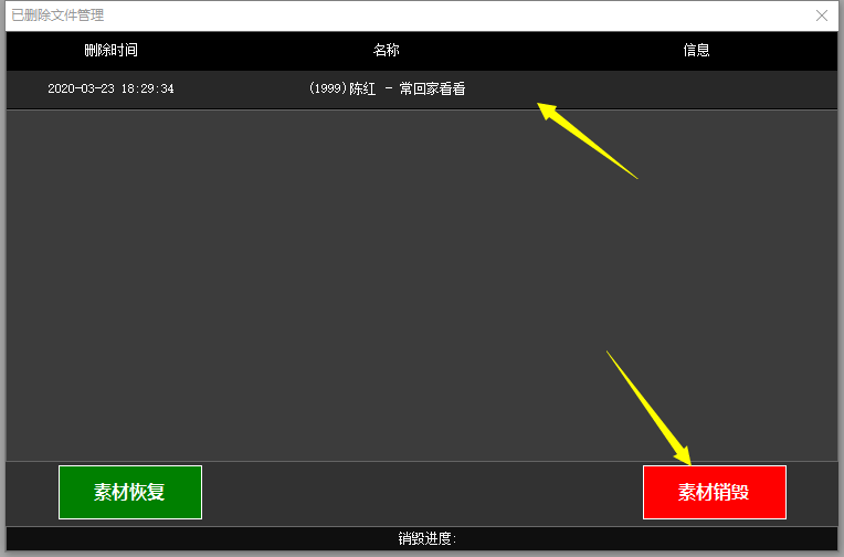 選擇您將要銷毀的文件,點擊【素材銷毀】。