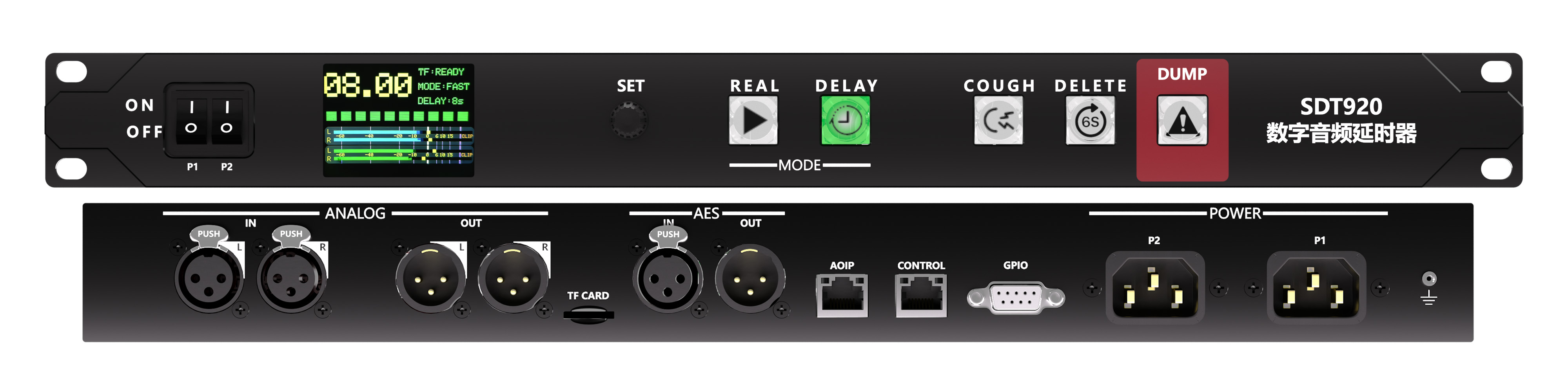 AOIP通道:1*2(輸入,延時前輸出、延時后輸出)